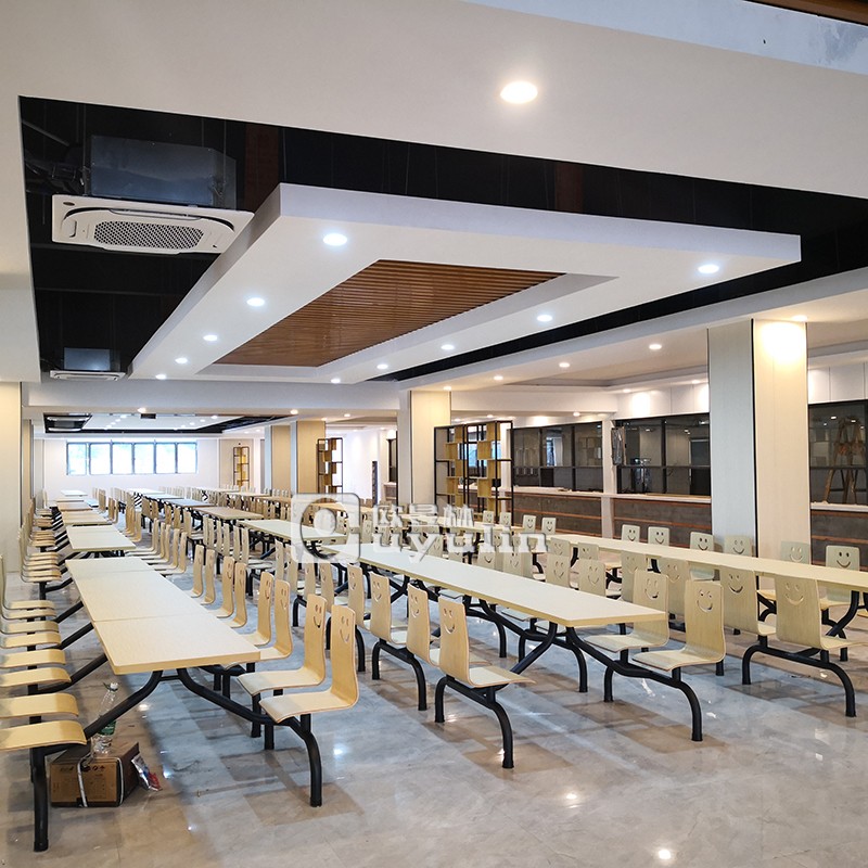該項目是江門學(xué)校食堂餐桌椅定制采購項目,所以選擇桌椅的時候強調(diào)座位數(shù)要多,而且桌椅以固定為主,強調(diào)美觀得來又耐用。因此選的是連體餐桌椅,材質(zhì)的為防火板和不銹鋼桌腳組成,打造溫馨舒適的食堂餐廳。